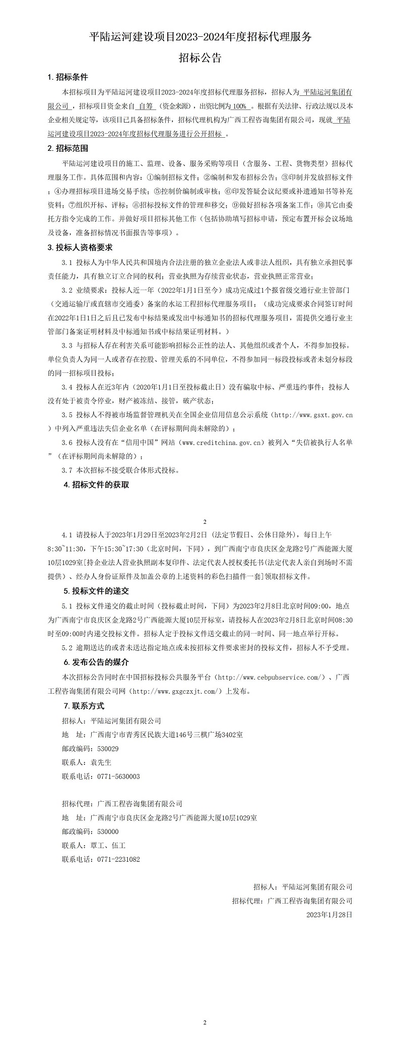 平陸運(yùn)河建設(shè)項(xiàng)目2023-2024年度招標(biāo)代理服務(wù)招標(biāo)公告