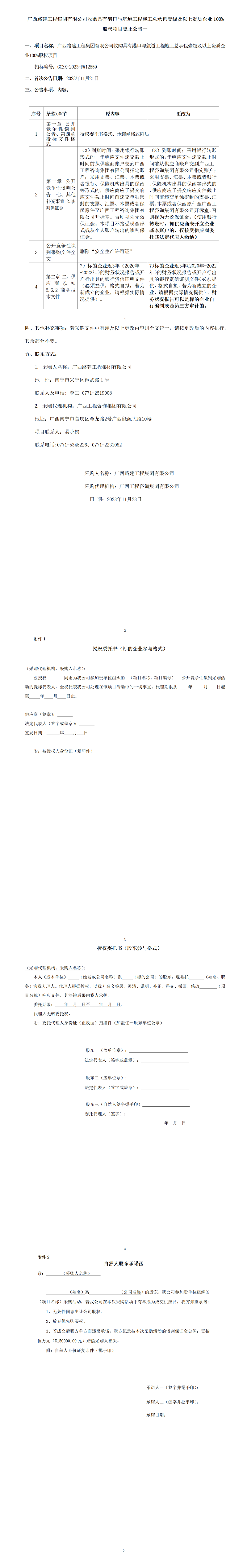 廣西路建工程集團有限公司收購具有港口與航道工程施工總承包壹級及以上資質企業(yè)100%股權項目更正公告一